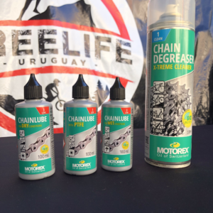 Luego de limpiar la transmisión se debe aplicar aceite y ahi entran en juego las tres opciones dde aceite, DRY/PTFE/WET que te garantizan una mayor vida útil de tu transmión.